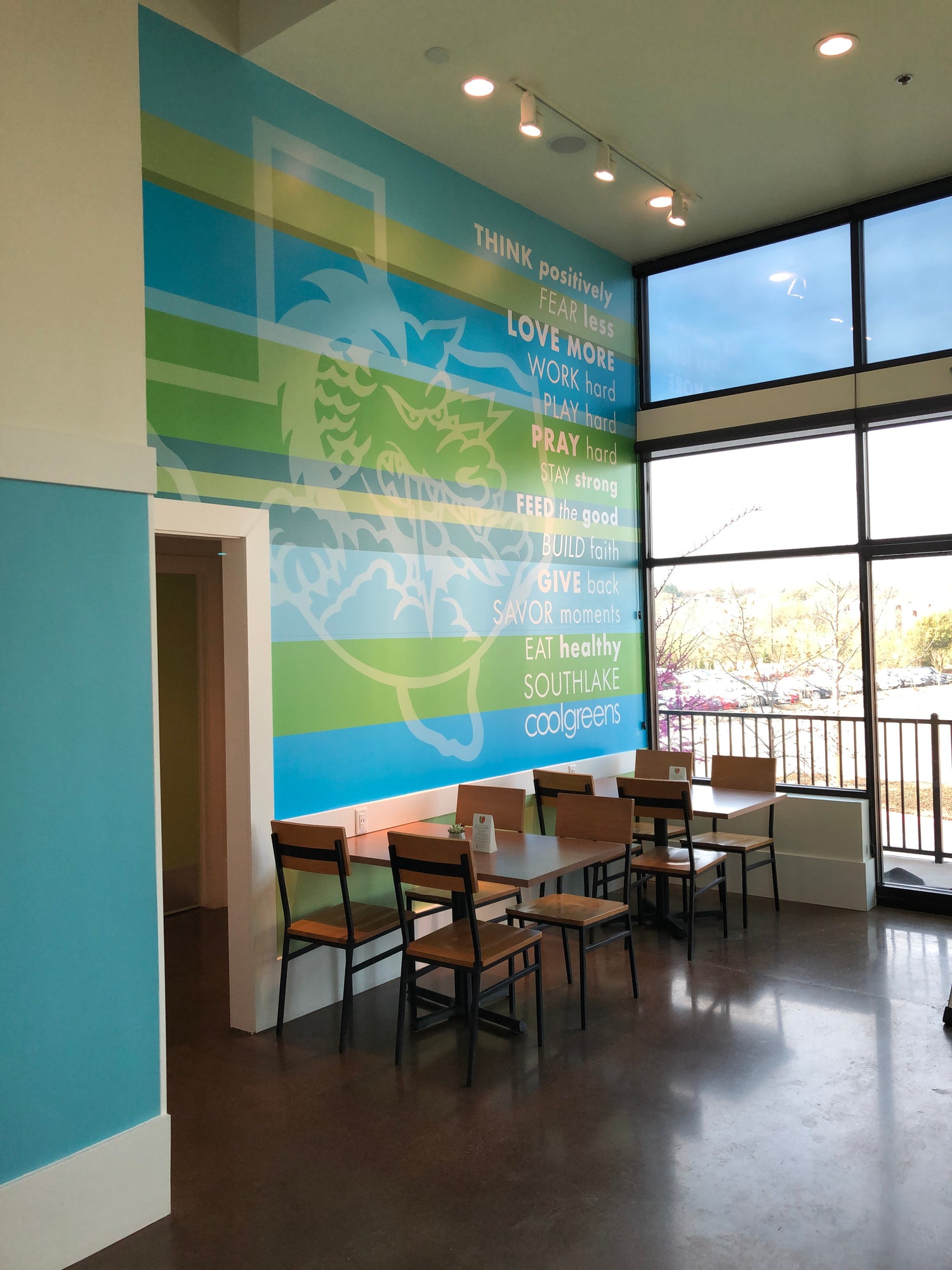 Transform your space with custom printed wall murals or add an inspiring quote with cut graphics. The options are endless. Pair with dimensional signage or an acrylic sign to add depth and dimension to your project.